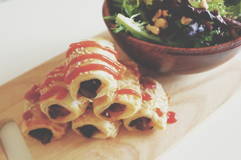 Mini Sausage Rolls with a Hazelnut-dressed Mixed Leaf Salad