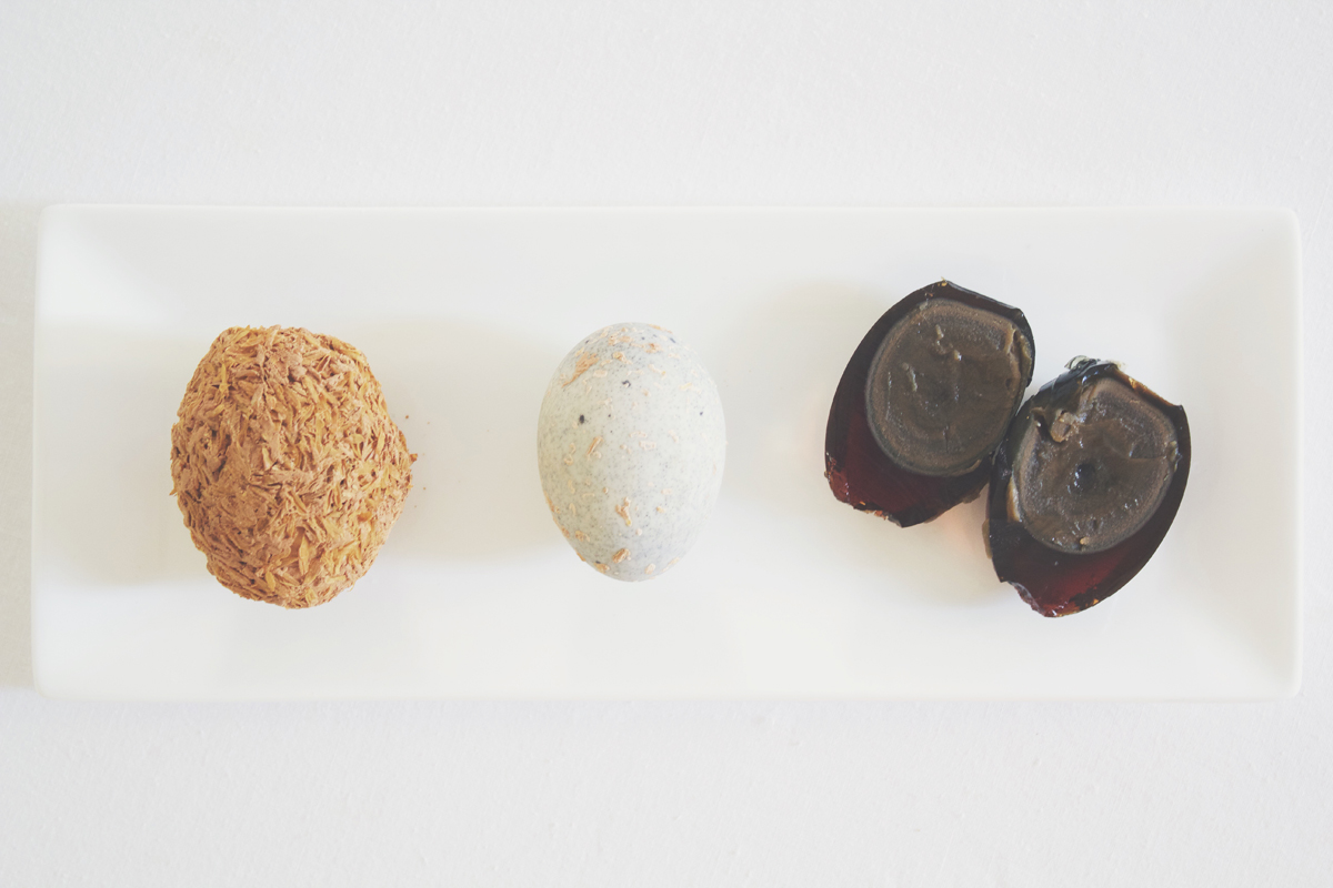 Now before I go on to the recipe, I thought I’d talk a little bit about what a century egg is. For those of you who don’t know, century egg (also know as a preserved egg), is a Chinese delicacy traditionally made by preserving duck, chicken, or quail eggs, in a mixture of clay, ash, salt, quicklime, and rice hulls for several weeks, or even months. Through this process, the yolk turns dark green to grey in colour, acquiring a creamy consistency and a strong flavour. On the other hand, the egg white becomes jelly-like and translucent, dark brown in colour, and salty in flavour. I know what you’re thinking, sounds disgusting right? I’ll be honest with you, it took me a while to be able to get over its looks and smell. I still don’t love it, but it’s definitely good with congee! To prepare these eggs for the congee, you simply just have to wash off the mixture of clay, ash, salt, quicklime, and rice hulls that cover the egg. I recommend washing it outside as to not clog your sink with all the residue. Tap the eggs on a countertop until covered in cracks, and then peel the shell off.
