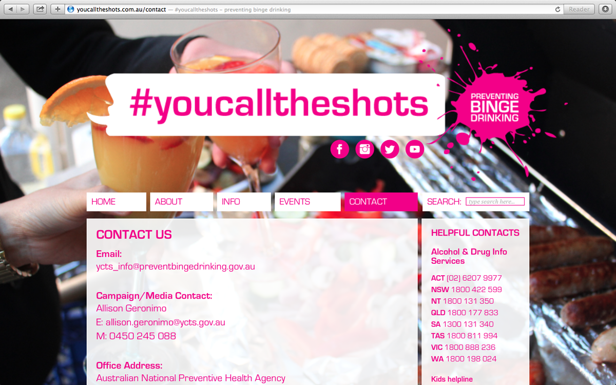 #youcalltheshots Website Design Info Page #youcalltheshots Website Design Events Page #youcalltheshots Website Design Contacts Page