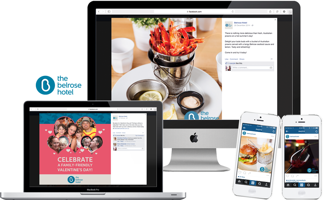 The Belrose Hotel will become the destination on Sydney’s North side for a comfortable and quality family dining experience. The Belrose Hotel has long been famous for delicious food and a friendly family feel, and it’s about to get even better. Since they have restyled their services recently, their graphic style plays on the family and food aspect, to promote their re-opening via social media to get across a wider, yet still specific audience – focusing on families living in Sydney’s North.