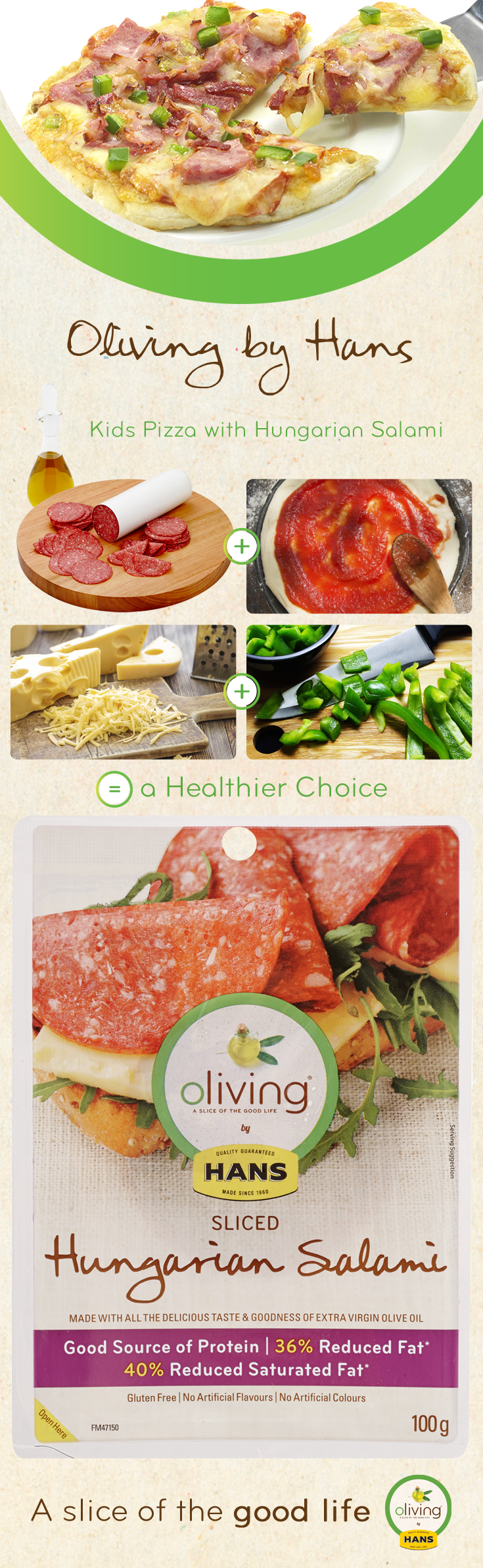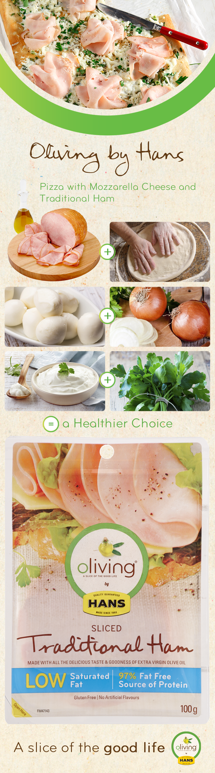 Oliving by Hans: Kids Pizza Oliving by Hans: Smoked Ham Sandwich Oliving by Hans: Mediterranean Parcels
