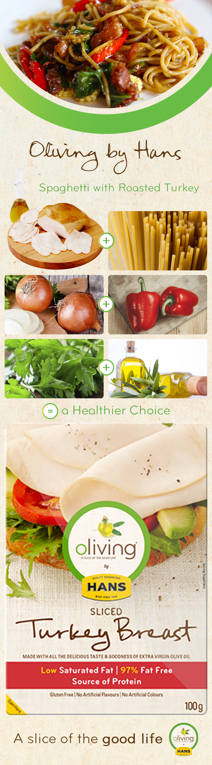 Oliving by Hans: Roasted Asparagus Oliving by Hans: Mozzarella Pizza Oliving by Hans: Spaghetti Turkey